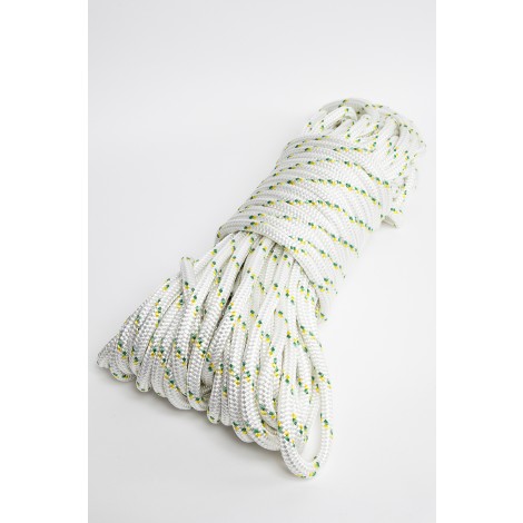 - Corde de polyester double tresse (PDT) : sa construction double tresse (PDT) en fait une corde durable et à faible élasticité pour plus de sécurité (seulement 12 % au point de rupture).