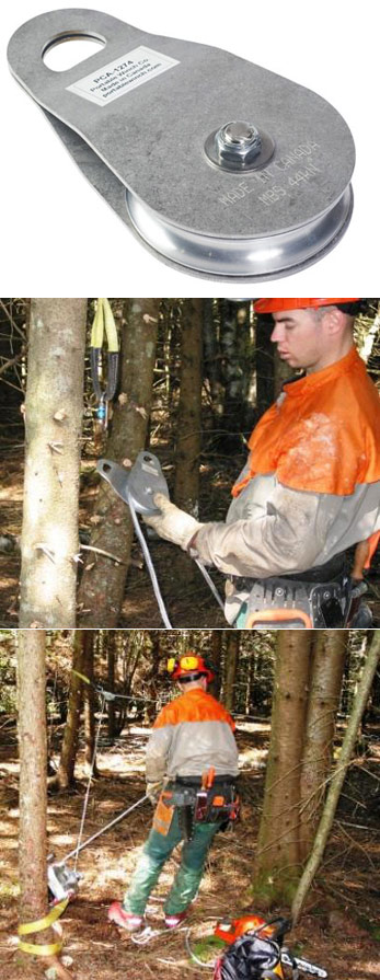 - Cette poulie de déviation vous permet de dévier la trajectoire d'une bille de bois tirée afin d'éviter des obstacles infranchissables ou pour la positionner parallèlement au sentier.