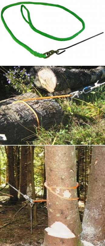 - Une épissure formant un oeillet long à l'autre bout sert à étrangler le bois.