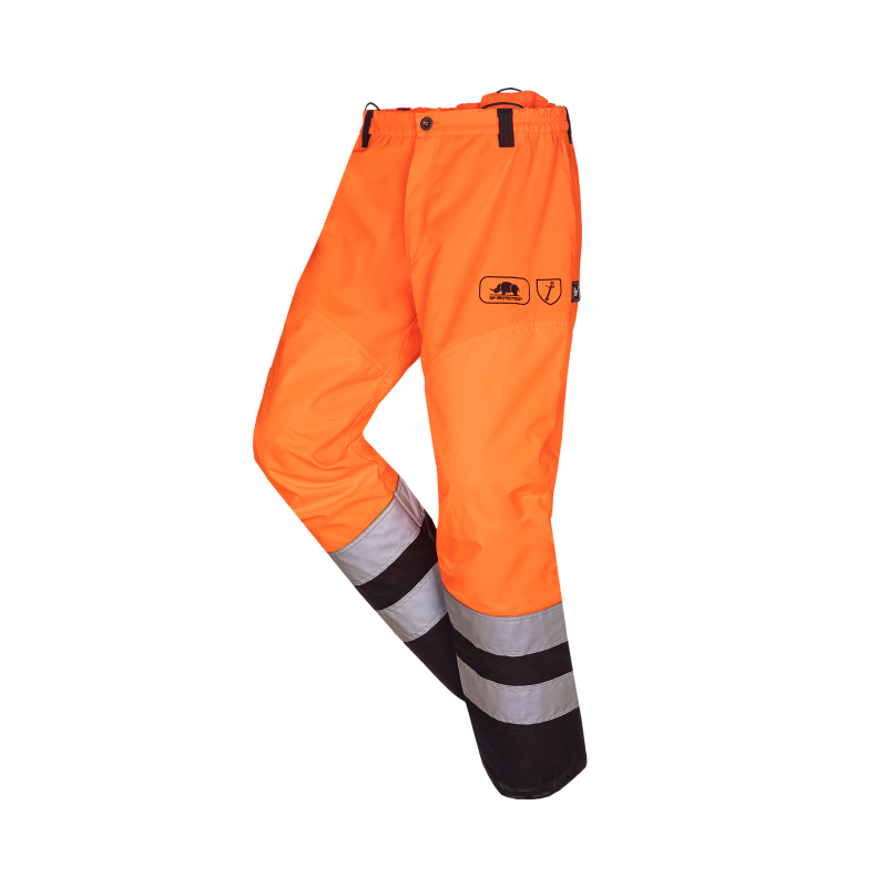 Pantalon de débroussaillage classe 2 haute visibilité norme EN ISO 20471 avec une mousse amovible résistante aux projections.